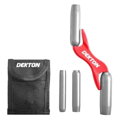 ManoManoDekton 4 in 1 Barrel Brick Layer Jointer Multi Size 1/2" 5/8" 3/4" 7/8" Builder Cranked design to take your hands away from the work and brick work. Professional brick jointer for commercial or occasional use. 4 size interchangeable double ended brick jointer. For all brick and block jointing requirements. 4 size stainless steel heads ranging from 1/2" - 7/8". Aluminium alloy handle with increased knuckle room. Threaded barrels for quick and easy size change. perfect for making neat weatherproof joints in brickworks and in between bricks courses. Suitable for either brick or block work. Storage pouch for holding the barrels when not in use.
