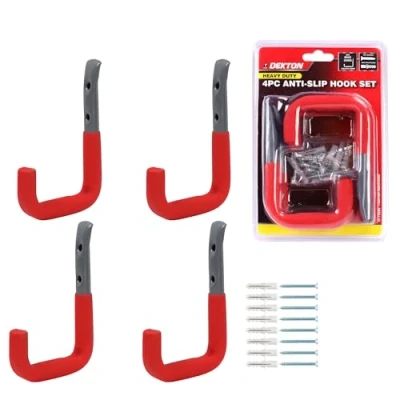 DEKTON 4PC 12cm x 8.5cm General Purpose Wall Hooks Max Capacity of 25kg Ideal for Hanging Tools, Coats, Bags, and More Durable, Rust Resistant Metal Construction Home, Garage, or Office