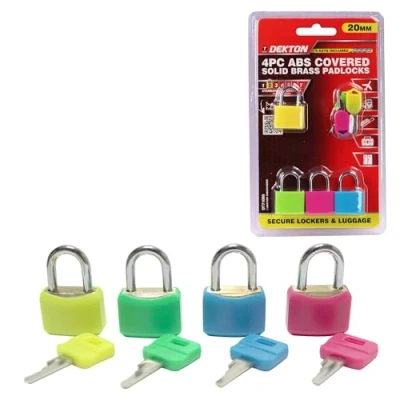 Dekton 4pc Set 20mm ABS covered Solid brass Padlocks of 4 Ideal for lockers or luggage High Security, Weather Resistant, Keyed Alike, Luggage, Storage & Doors