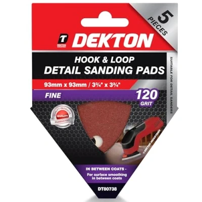 Dekton 5PC Hook and Loop Detail Sanding Pads 93mm/Extra Coarse 120 Grit Ideal for Sanders Multi Surface Use on Wood, Metal, Plaster, Plastics & Paint Heavy Duty Performance