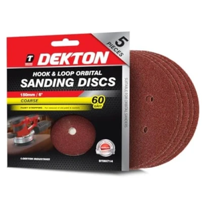 Dekton 5PC Hook and Loop Orbital Sanding Discs 150mm/Extra Coarse 60 Grit Ideal for Sanders Multi Surface Use on Wood, Metal, Plaster, Plastics & Paint Heavy Duty Performance