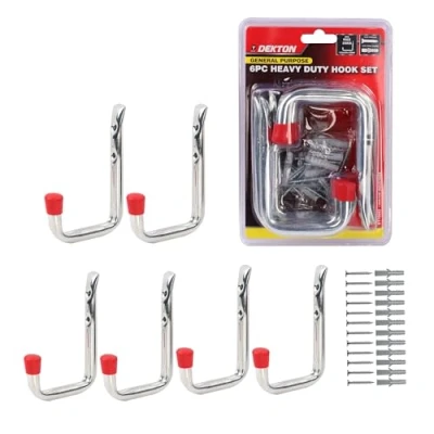 DEKTON 6PC 12cm x 8cm General Purpose Wall Hooks Max Capacity of 25kg Ideal for Hanging Tools, Coats, Bags, and More Durable, Rust Resistant Metal Construction Home, Garage, or Office