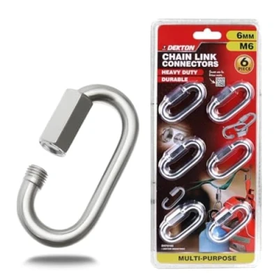 Dekton 6pc Chain Link Connector 6mm Heavy Duty Metal Links Ideal for Securing Chains and Ropes Rust Resistant Finish Perfect Outdoor, Industrial Applications High Strength, Durable, Versatile