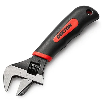 Dekton 2 In 1 Stubby Adjustable Wrench Serrated angled and straight jaw wrench. Metric and imperial gauges. 1" (25mm) jaw capacity. Drop forged steel. Hardened and tempered.