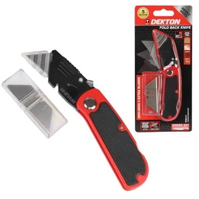 DEKTON DT60113 Fold Back Knife, Rapid Blade Change, Spare Blades Included, red/Black