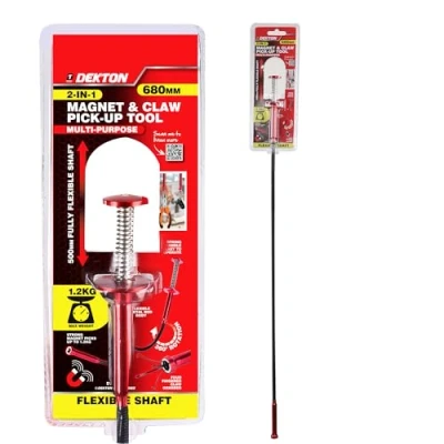 Dual Functionality for Versatile Use: The Dekton 2-in-1 Magnetic & Claw Pick-Up Tool combines a powerful magnetic tip for retrieving metal objects and a spring-loaded claw for grabbing non-metallic items, providing a versatile solution for various tasks. Strong Magnetic Tip: The magnetic tip is designed to easily pick up screws, bolts, nails, and other metal objects, even in tight spaces. It’s perfect for jobs that require precise retrieval in hard-to-reach areas. Spring-Loaded Claw for Secure Grip: The claw end features a spring-loaded mechanism that provides a firm grip on non-metallic objects, making it easy to retrieve small items like plastic caps, coins, or other non-metal objects. Flexible Long-Reach Design: The flexible shaft allows you to reach behind furniture, into engine compartments, or other awkward spaces with ease, making this tool a must-have for both home and professional use. Ergonomic and Durable Build: Built with a comfortable, non-slip ergonomic handle, this tool ensures precise control during use. Its durable construction guarantees long-lasting performance, even in demanding environments., Manufacturer: Avron Trading Ltd