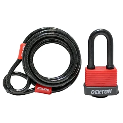 ManoManoDekton Waterproof Padlock Steel Shackle Outdoor Security 2.5 Cable Chain Lock Dekton waterproof padlock 50mm Heavy duty waterproof thermoplastic cover. 50mm shackle Includes 2 keys With Spiral cable 8mm x 2.5mClick here to see description Dekton Waterproof Padlock Steel Shackle Outdoor Security 2.5 Cable Chain Lock Dekton waterproof padlock 50mm Heavy duty waterproof thermoplastic cover. 50mm shackle Includes 2 keys With Spiral cable 8mm x 2.5m