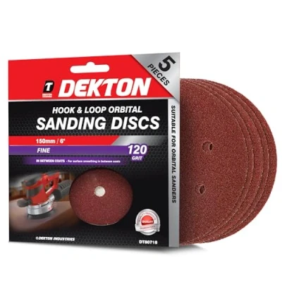 Extra Coarse 120 Grit: The Dekton 5PC Hook and Loop Orbital Sanding Discs are designed with a 120 grit surface, providing powerful sanding for heavy material removal, making it ideal for tough tasks like paint stripping and smoothing rough surfaces. Multi-Surface Versatility: These sanding discs are suitable for use on a wide range of surfaces including wood, metal, plaster, plastics, fiberglass, and painted surfaces, offering flexibility for various projects. Hook and Loop Fastening: Featuring a convenient hook and loop attachment system, these discs allow for quick and easy installation on your orbital sander, ensuring secure attachment during use and easy disc replacement when needed. 150mm Diameter for Orbital Sanders: Specifically designed for orbital sanders, the 150mm diameter ensures even sanding and excellent coverage, making it suitable for both DIY and professional projects requiring precision and speed. Durable and Long-Lasting: Manufactured with premium materials, these sanding discs are built for durability and consistent performance, allowing you to complete your projects with reliable, long-lasting sanding power on demanding tasks.