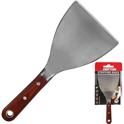 ManoManoDekton 4 inch stiff scraper Ideal for filling cracks scraping wallpaper and repairing holes. High quality stainless steel blade. Hollow ground blade. Hardwood handle. Full tang.