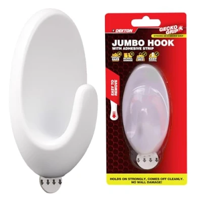 Heavy-Duty Strength: Designed for robust performance, the Dekton Geckogrip Jumbo Hook can securely hold up to 10kg (22 lbs), making it perfect for hanging heavy items such as towels, bags, and kitchen utensils. Ideal for use in high-traffic areas where durability is crucial. Strong Adhesive Grip: Featuring a premium, strong adhesive backing, this wall hook adheres firmly to a variety of surfaces including tiles, glass, and painted walls. No need for drilling or tools – simply peel and stick for instant, reliable placement. Reusable & Residue-Free: Enjoy the flexibility of repositioning without leaving any residue or damage behind. The Dekton Geckogrip Jumbo Hook can be removed and reattached to different surfaces as needed, making it a reusable and convenient storage solution. Sleek white Finish: The modern, sleek white design seamlessly blends with any decor, adding a touch of elegance while remaining unobtrusive. Its minimalist style ensures it complements your interior design without overpowering it. Ideal for Multiple Spaces: Versatile enough to be used in various locations around your home or office. Whether you need extra storage in the kitchen, organization in the bathroom, or space-saving solutions in your office, this hook is an excellent choice for enhancing functionality and decluttering., Weight: 0.11464037624 pounds, Manufacturer: Avron Trading Ltd