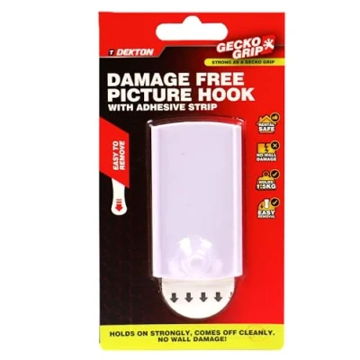 Secure and Reliable Hanging: The Dekton Geckogrip Mega Picture Hooks feature an advanced adhesive backing that securely holds your frames, art, and decor in place without the need for nails or screws. Enjoy a reliable solution for displaying your favorite items with confidence. Strong Adhesive Backing: Equipped with a high-strength adhesive, these hooks provide a strong and dependable hold on a variety of wall surfaces. The adhesive is designed to support medium-weight items, ensuring your decor stays put without slipping or falling. No Tools Required: Simplify your wall hanging projects with these easy-to-use hooks. No drilling, hammering, or tools are needed—just press the hooks onto your desired surface and let the adhesive do the work. Ideal for quick and hassle-free installation. Reusable and Residue-Free: The Dekton Geckogrip hooks are designed to be removed and repositioned without leaving any residue or damage behind. Enjoy the flexibility to rearrange your decor as needed while maintaining a clean and undamaged wall surface. Perfect for Various Surfaces: These picture hooks are suitable for a range of wall types, including painted walls, drywall, and more. Their strong adhesive ensures a secure hold across different surfaces, making them a versatile choice for any room or space., Weight: 0.0440924524 Pounds, Manufacturer: Avron Trading Ltd
