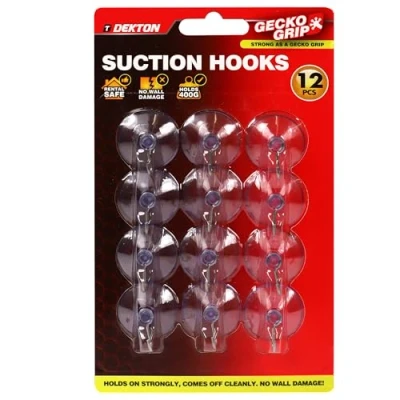 No Tools, No Hassle: Install these Dekton Geckogrip Suction Hooks effortlessly without drilling or using any tools. Simply press the suction cup onto a smooth surface, and you're ready to hang. Ideal for kitchens, bathrooms, and other areas where you want to avoid damaging walls or tiles. Strong & Secure Hold: Each hook provides a strong and reliable grip on smooth surfaces like glass, tiles, or mirrors. Designed with Geckogrip technology, these suction hooks ensure your items stay securely in place, whether it's towels, kitchen utensils, or bathroom accessories. Reusable & Residue-Free: These hooks can be easily removed and repositioned without leaving any sticky residue or marks on your walls. Simply rinse the suction cup with water if it loses its grip, and it will be ready to use again, making it a perfect eco-friendly solution. Durable & Waterproof: Made from high-quality materials, these hooks are built to withstand humid environments, making them perfect for bathrooms and kitchens. The waterproof design ensures they maintain their strong hold, even in wet conditions. Compact & Discreet Design: With their sleek and unobtrusive design, these hooks blend seamlessly into any decor. The large size and 12-piece set provide ample options for organizing your space without compromising on style. The Dekton Geckogrip Suction Hooks are versatile enough for various uses around the home., Weight: 0.09259415004 pounds, Manufacturer: Avron Trading Ltd