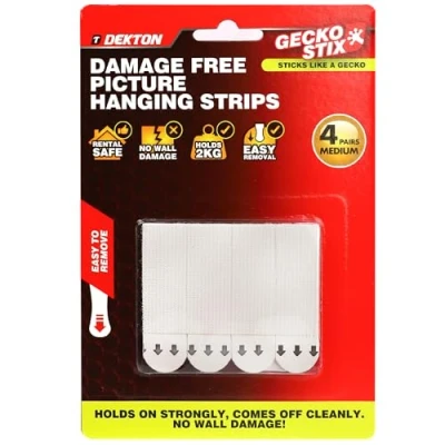 Compact and Efficient Storage Solution: The Dekton Geckostix 4pc Medium Adhesive Wall Hooks are designed with a compact profile that makes them ideal for organizing small items like keys, cables, and other essentials. Their sleek design ensures they fit perfectly in any room or office space without taking up too much space, offering a clutter-free environment. Strong Adhesive for Secure Hold: Equipped with powerful adhesive backing, these wall hooks provide a secure and stable hold, ensuring your items stay in place. Perfect for use on smooth surfaces, the strong adhesive can handle everyday items with ease, providing reliable support for small but important belongings. Reusable and Residue-Free: The Geckostix wall hooks are designed to be reusable, allowing you to reposition them as needed without losing their adhesive strength. Best of all, they remove cleanly without leaving any sticky residue or damaging your walls, making them a versatile option for both temporary and permanent setups. Durable and Long-Lasting: Crafted from high-quality materials, the Dekton Geckostix wall hooks are built to last. Their durability ensures that they can withstand daily use without losing their strength or adhesive power, offering a reliable organization tool that you can count on over time. Versatile Use in Home and Office: Whether you need to organize your keys by the door, manage cables behind your desk, or create extra storage in your kitchen or bathroom, these adhesive hooks are up to the task. Their versatile design makes them suitable for various applications, providing efficient organization solutions wherever you need them.