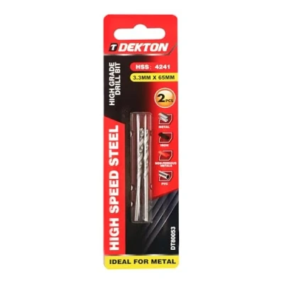 Dekton HSS R Edge Ground Drill Bit 3.3mm x 65mm 118 Degree Angle Point High Speed Steel Ideal for Metal Drilling Versatile Wood & Plastic Precision Engineered Superior Performance