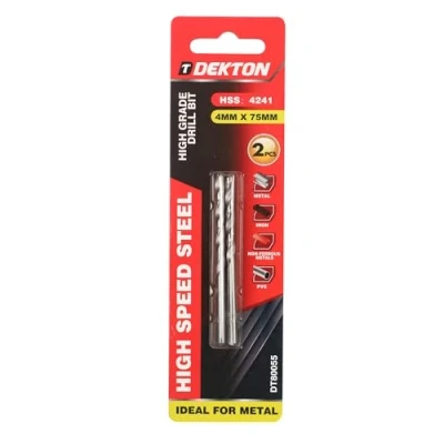Dekton HSS R Edge Ground Drill Bit 4mm x 75mm 118 Degree Angle Point High Speed Steel Ideal for Metal Drilling Versatile Wood & Plastic Precision Engineered Superior Performance