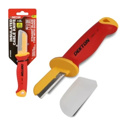 DEKTON Insulated Cable Knife 180mm Straight Blade, Guard & Finger Hook Ergonomic Anti Slip Handle VDE Certified for Electrical Work