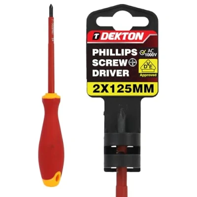 DEKTON Phillips VDE Screwdriver PH2X125MM Tested to 1000V EN IEC 60900:2018 Certified Insulated Sheath for Electrical Safety Chrome Vanadium Shaft Durable Corrosion Resistant Tip