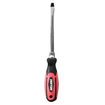Durable CR-V Steel Construction: The Dekton Flat Screwdriver is made from high-quality CR-V steel, ensuring durability and strength for both heavy-duty and everyday tasks. This robust material provides long-lasting performance, making it ideal for various DIY, home improvement, and professional applications. Magnetic Tip for Convenience: Equipped with a magnetic tip, this screwdriver allows you to easily pick up and handle screws, preventing loss or dropping in hard-to-reach areas. The strong magnetic feature ensures precision and efficiency during work, especially in confined spaces. Comfortable Rubber Handle: Designed for comfort and control, the screwdriver features a non-slip rubber handle that provides a secure grip, reducing hand fatigue during extended use. The ergonomic design ensures excellent torque and precision while making the tool comfortable for repetitive tasks. Compact 6mm x 38mm Size: With its compact size, this flat screwdriver is perfect for precision tasks and tight spaces. The 6mm blade width and 38mm length offer excellent control and maneuverability, making it suitable for detailed jobs or situations where larger tools may be cumbersome. Versatile Application: The Dekton Flat Screwdriver is ideal for a wide range of applications, including automotive repair, furniture assembly, electronics, and general household maintenance. Its versatile design makes it a must-have tool for any toolbox, providing reliable performance in every situation., Weight: 0.1543235834 pounds, Manufacturer: Avron Trading Ltd
