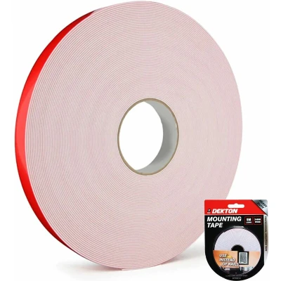 Dekton Red Release 24MM x 5M Heavy Duty Double Sided Mounting Tape Strong Sticky Foam for Picture Hanging Replaces Nails, Screws, and Tacks Holds Up to 1Kg Long Lasting Easy Use