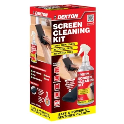 Dekton Screen Cleaning Kit, Alcohol & Ammonia Free, Includes 30x30cm Microfibre Cloth, Safe for TVs, Phones, Tablets, Laptops, Cameras All Screens