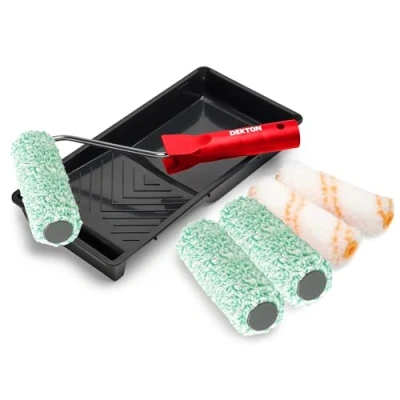 Dekton Trade 4" Emulsion Set 7pc Woven Roller Ideal For Paints On Walls & Ceiling Medium Pile Fabric Sleeves Durable Finish, Seamless Repairs Nicks 3 2 Standard Sleeves, Tray