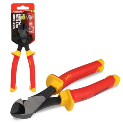 DEKTON VDE Heavy Duty Diagonal Cutting Pliers 7" Insulated Handles for Safety Precision Edges Soft & Hard Wire Clean Copper Durable Electricians Hand Tool