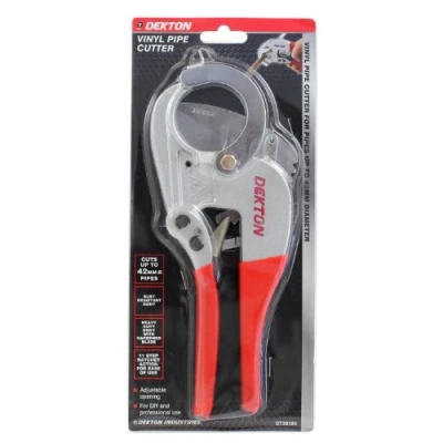 Adjustable Opening: Designed to handle a wide range of pipe sizes with ease, the Dekton Vinyl Pipe Cutter features an adjustable opening that accommodates pipes up to 42mm in diameter. This flexibility makes it perfect for various DIY projects, professional applications, and home repairs. Heavy Duty Body: Constructed from robust materials, this pipe cutter boasts a heavy-duty body that ensures long-lasting durability and resilience. Its hardened blade delivers precise cuts, making it a reliable tool for cutting vinyl, plastic, and other types of piping with minimal effort. Rust Resistant: Built to withstand harsh environments, the Dekton Pipe Cutter's rust-resistant body ensures it remains in excellent condition even after prolonged use. This feature extends the tool's lifespan and maintains its performance, making it a dependable choice for both indoor and outdoor applications. 11-Step Ratchet Action: Equipped with an 11-step ratchet action mechanism, this pipe cutter provides smooth and controlled cutting performance. The ratchet system allows for incremental cuts, making it easier to achieve clean, accurate cuts without the need for excessive force. Versatile Use: Ideal for various applications, from DIY home improvement projects to professional plumbing tasks, this pipe cutter is designed to meet the needs of both amateur and seasoned users. Its versatility ensures it is a valuable addition to any toolkit, suitable for cutting vinyl, plastic, and other pipe materials., Manufacturer: Dekton