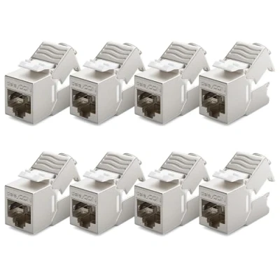 deleyCON 8x CAT6a MINI Keystone Jack Module Patch Cable Network Connector STP Shielded RJ45 Socket Panel Mounting Extension