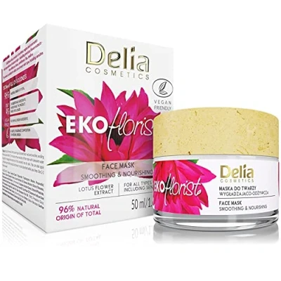Delia Cosmetics EKOflorist Face Mask Smoothing, Nourishing, Vegan Natural Cosmetic Shea Butter, Coconut Oil, Lotus Extract Each Skin Type Firms, Moisturizes, Nourishes, Regenerates 50ml
