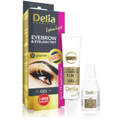 Delia Cosmetics GRAPHITE Eyebrow & Eyelashes Tint, Innovative Formula, Easy 15 Applications, Full Treatment Kit