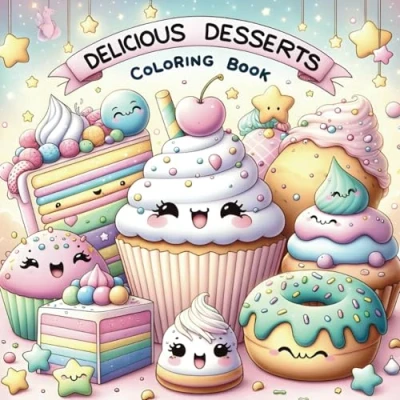 Delicious Desserts Coloring Book: Kawaii Sweet Treats Book, Cakes, Cupcakes, Donuts, Ice Creams, and More, Bold & Easy Large Format for Dessert Lovers Kids, Teens, Adults