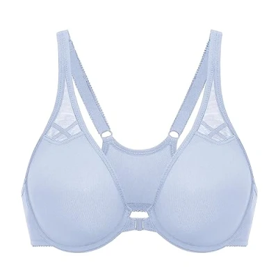 Secure front closure is convenient to put-on and take-off Racerback provides stability to the back while preventing shoulder straps from slipping, perfect for matching your backness dress Underwired cup without padding give support and a natural look Full coverage bra with mesh insert for breathability Seamless soft material to wear comfortably