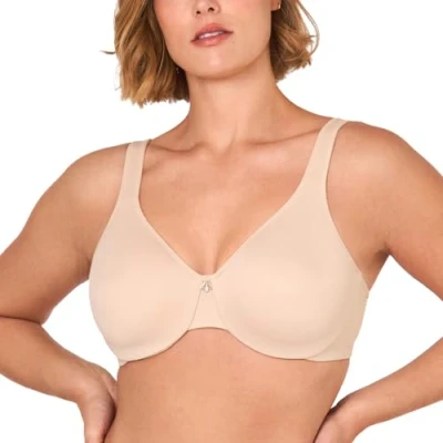 Molded 2-ply full cup offers double support without bulky feeling Seamless non-stretch cups provide support and a leaner look Cushioned strap to alleviate shoulder stress for all day comfort Underwire encased with padding lifts cozily Compression side wings smooth out under armpit boob