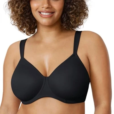 Delimira Women's Non Padded Minimiser Bras Full Coverage Seamless Underwire Plus Size Smooth T Shirt Bra Black 34H