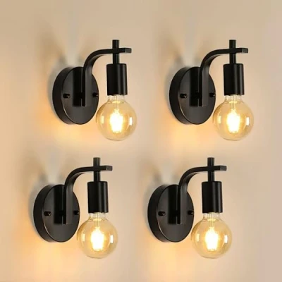 DELIPOP 4 Pack Industrial Wall Lights, Black Metal Lamps, E27 Vintage Sconce Lighting Fixtures for Living Room, Bedroom, Kitchen, Hallway, Restaurant, Not Included Bulb