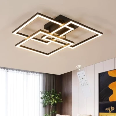 Specifications: LED ceiling light dimensions: L62*W62*H11 cm. Power: 40 W, 4500LM. Material: Aluminium+Acrylic. Black lamp body, dimmable 3000 K-6500 K, brightness adjustment 10%-100%, lighting area: 15-20 ㎡ Geometric design: Square LED ceiling light with a clean-lined design that can be easily integrated into a variety of decorative styles, adding a sense of comfort and three-dimensionality to the home and making the space appear more spacious Dimmable: With the remote control, you can adjust the light colour from 3000 K to 6500 K and the brightness from 10% to 100% to suit your needs and the atmosphere Eye protection: Modern LED ceiling light uses integrated energy-saving LED chips with high luminous efficiency, protecting your eyes and those of your family from glare interference Widely used: The modern kitchen ceiling light has a wide range of applications, suitable for living spaces such as the living room, bedroom, hallway, balcony, kitchen, dining room, etc., and is also suitable for commercial venues such as offices, restaurants, galleries, bars, etc