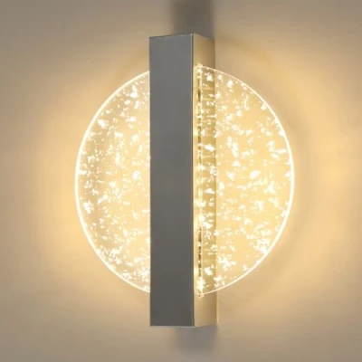 Modern Design: This circular wall sconce lights seamlessly blends contemporary design with understated luxury. The brushed silver base and transparent shade inlaid with silver glitter create a shimmering effect, making it perfect for sophisticated settings Technical Specifications: Wall lamps Dimensions: 25 x 20 x 4.5 cm, Color: Silver, Wattage: 12W, Color Temperature: 3000K (Warm White), Voltage: 220-240V, Coverage Area: 8-12 square meters, Material: Metal + Acrylic Durable Materials: The wall lighting fixtures a rust-resistant metal frame for long-lasting durability. Its high-transparency acrylic shade ensures even light distribution without glare, while the internal silver foil creates subtle reflections Premium LED Bulb: Wall lights led high-performance LEDs: 85% more energy-efficient than traditional bulbs! Stable light output with no flickering makes them ideal for eye protection. Long lifespan of up to 30,000 hours Installation and Application: The wall lighting for living room a simple design and easy installation, complete with all mounting hardware and multilingual instructions. Suitable for indoor spaces such as bedrooms, living rooms, hallways, dining rooms, studies, and bedside areas