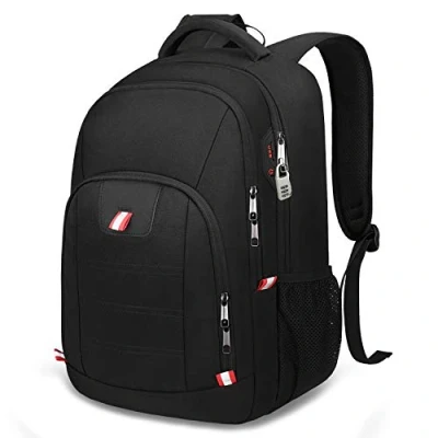 LARGE CAPACITY - Men travel backpack owns 20+ Independent pockets for large storage and organization for small items. 3 spacious main multi compartments with many hidden pockets can accommodate lots of stuffs like college supplies, travel accessories, clothes, stationery, notebook, Side deep zipper pocket for easy access essentials. Side elastic net pockets conveniently hold travel gear umbrellas or water bottles. Ideal book bag backpack for perfectly. DIMENSION & SCRATCH RESISTANT MATERIAL - Size of extra large college backpack: 12.6 *7.8*19.6 (inches). Capacity:45L. Separate padded laptop compartment fits most 13, 14, 15, 15.6, 16, 17, and up to 17.3 inch laptop/Ipad/Computer. Laptop backpack/computers for women, men and teacher. The business computer backpack made from high quality polyester fabric shockproof with high density nylon lining for better TEAR & WATER RESISTANT and heavy duty backpack. Anti-theft & SAFE - Included a THEFT PROOF COMBINATION LOCK & DURABLE MENTAL ZIPPERS, protects wallet and other items inside from thief and offers a private space. USB CHARGING PORT & NIGHT LIGHT REFLECTIVE - With built in USB charger outside and built in charging cable inside, this usb backpack offers you a more convenient way to charge your phone while walking. Please noted that this backpack doesn't include the power bank itself, usb charging port only offers an easy access to charge. NIGHT LIGHT REFLECTIVE design on the front of the backpack will keep all the users safe when use the backpack in the night or dark area. BREATHABLE & COMFORTABLE - Padded and breathable mesh back panel of this computer rucksack design help for the air convection, ventilation and heat elimination. Comfortable wide breathable mesh shoulder straps with plentiful sponge pad help relieve the stress from your shoulder. Both sides of the shoulder strap with lanyard design, can hang sunglasses and other small pendants. Premium bookbags for men also backpack.