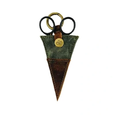 Scissor pocket is made of canvas and leather Case protects your scissors Scissors are held in place by a leather flap with a brass press fastener Flap has a lockable brass ring Attach the scissor pocket to or in a (project) bag