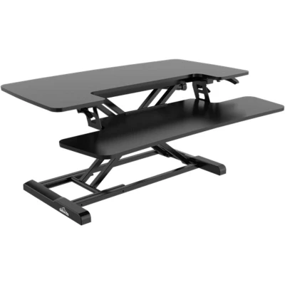 Transform your workspace with the innovative height-adjustable desk riser, designed to create a dynamic sitting or standing working environment. This versatile riser features a spacious 35" work surface, providing ample room to accommodate all your essential office items in one convenient location. Its sizeable keyboard tray is easily removable for those who prefer a more minimalist aesthetic while working, ensuring maximum flexibility to suit your preferences.