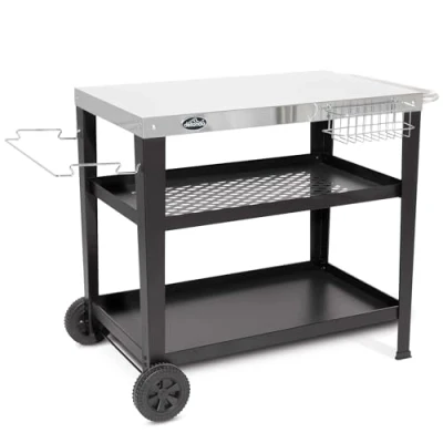Simple Space - The BBQ trolley is at a convenient height for easy cooking using plancha grills or pizza ovens on top while it is also the perfect accompaniment for your standard BBQ. Ideal for Cooking - This trolley is the perfect fit for Dellonda Plancha Grills DG21, DG22 & DG23 or our Pizza Ovens DG10, DG11, DG104 & DG257. Easy Movement - The BBQ trolley can accommodate a 13 kg gas cylinder while the two 6" wheels ensure easy movement from the shed to the garden or patio. Attractive Finish - Stainless Steel top shelf Trolley Dimensions (W x D x H): 1165 x 605 x 805mm Top Shelf Dimensions (W x D): 850 x 500mm Middle Shelf Dimensions (W x D): 815 x 460mm Bottom Shelf Dimensions (W x D): 835 x 485mm Top Shelf Weight Capacity: 21kg Some simple assembly required.