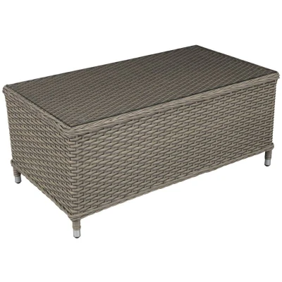 This modern rattan coffee table will work in any outdoor space from large gardens to small patios and balconies. Manufactured using dual rattan weave 7mm half round and 5mm round creating the impression of wicker. Manufactured using dual rattan weave 7mm half round and 5mm round creating the impression of wicker, so you can enjoy your furniture all year round. Can be used as a coffee table, side table, snack table or balcony table. STYLISH DESIGN - This modern rattan coffee table will work in any outdoor space from large gardens to small patios and balconies. STRONG CONSTRUCTION - Manufactured using dual rattan weave 7mm half round and 5mm round creating the impression of wicker. WEATHER-RESISTANT - Manufactured using dual rattan weave 7mm half round and 5mm round creating the impression of wicker, so you can enjoy your furniture all year round. VERSATILE Can be used as a coffee table, side table, snack table or balcony table. DIMENSIONS (W x D x H) 108 x 58 x 46cm 3 Year Guarantee*.