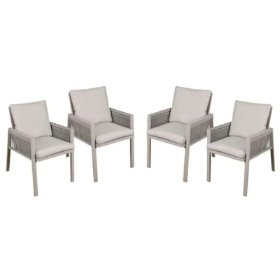 Dellonda Fusion Garden/Patio Aluminium Dining Chair with Armrests, Set of 4, Light Grey