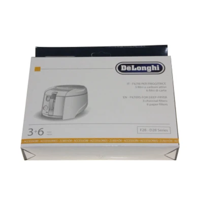 Suitable for appliances of DeLonghi. Suitable for the model numbers (a.o.): DeLonghi F28533.W1 (0125503721) fryer, DeLonghi F28533.W1 (0125503716) fryer, DeLonghi F28311.W1 EX:1 (0125304708) fryer, DeLonghi F28311.W1 EX:1 (0125304706) fryer, DeLonghi F28533.W1 (0125503715) fryer, DeLonghi F28533 (0125503711) fryer, DeLonghi F28311.W1 EX:1 (0125304707) fryer, DeLonghi F28311 (0125304700) fryer, DeLonghi F28533.BK (0125503709) fryer and DeLonghi F28311 EX:1 (0125304703) fryer.Manufacturer description: genuine original delonghi F28, D28 series deep fat fryer filters (pack of 6 + 3).Replacement/alternative product of:DeLonghi 5312510071 grease filter - antigeruchsfilter