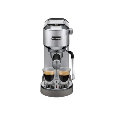 The iconic "Dedica"—now with cold brew coffee.The beloved "Dedica" series now lets you enjoy cold brew coffees, espressos, or creamy lattes from the comfort of your own home! Designed for true coffee enthusiasts, it offers an intuitive, user-friendly experience. The refreshed interface is larger, positioned at the top, and features vibrant touch icons for enhanced clarity. With its modern, eye-catching design, "Dedica Duo" is the ideal blend of style and functionality.DUAL COFFEE MENU: HOT & COLD"Dedica Duo" now brews both hot coffee drinks and the trendy cold brew coffee. Thanks to DeLonghi's exclusive "Cold Extraction" technology, you can enjoy a flawless cold brew cuppa at home, ready in under 5 minutes!"MY LATTEART" STEAM WANDFroth like a pro with the powerful "My LatteArt" steam wand, designed to help you craft flawless microfoam for authentic milk-based creations. The wand remains cool to the touch as well, making it easy to both use and clean.RENEWED INTERFACEEnjoy a truly seamless brewing experience with intuitive touch buttons and coloured icons. There are four different options for you to choose from: single espresso, double espresso, cold brew coffee, and milk foam. The iconic simplicity of "Dedica" has just gotten even better!READY TO USE IN SECONDSThanks to the "Advanced Thermoblock" heating system, "Dedica Duo" is ready to brew in just 25 seconds.15-BAR PRESSURE15-bar pump pressure ensures rich, aromatic espressos with a layer of velvety, nut-coloured crema on top.SUITED FOR TALL GLASSESThe improved drip tray and brewing unit accommodate taller glasses and cups that measure up to 13 cm in height, making this appliance perfect for cold brew and milk-based drinks.BOLDER ESPRESSOS WITH LARGER FILTER BASKETSSip café-style espressos at home thanks to the higher-capacity filter baskets, designed to accommodate up to 16 g of ground coffee. This allows for a richer, more aromatic espresso with a full body and flawless crema.COMPACT SIZEEnjoy a full barista experience in a sleek, compact, 15-cm-wide form guaranteed to blend seamlessly into any kitchen.ICONIC DESIGNWith its full-metal body and iconic Italian styling, "Dedica Duo" is bound to add a touch of elegance to your kitchen.HANDY ACCESSORIESIn addition to two different filters, the full set includes a metal tamper and a 250-ml stainless-steel milk jug, enabling you to start crafting café-quality beverages at home right away.