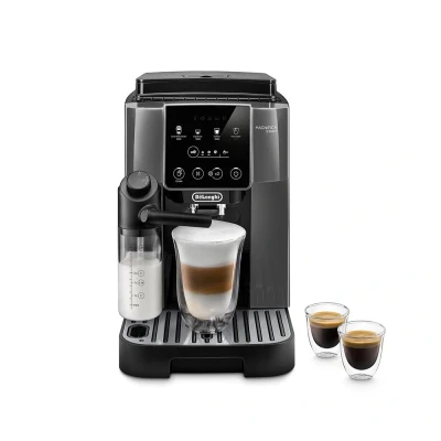 CurrysStart your day right with this De'Longhi Magnifica coffee machine. Enjoy freshly ground beans or pre-ground coffee, thanks to the 250g container and ground coffee case. The soft-touch control panel makes it easy to brew café-style drinks, even before you're fully awake. And the LatteCrema hot carafe lets you create barista-quality microfoam for perfect latte macchiatos at the touch of a button.Good to know- Customise your drinks with the one-touch menu, adjusting intensity and cup size to taste- The removable carafe lets you store your milk in the fridge to keep it fresh- Its auto-cleaning function keeps your machine hygienically clean with minimal effort- Run the descaling program to keep your machine running smoothly- The auto shut-off function gives you peace of mind if you're in a rush to leave the house