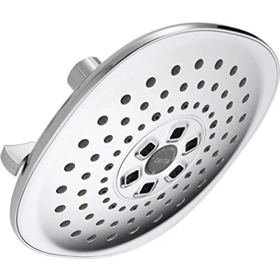 Experience the luxury, drenching power and full coverage only Delta H2OKinetic PowerDrench can deliver 3X more spray coverage than a standard shower Innovative H2OKinetic technology creates larger water droplets designed to mimic a drenching rainforest shower 3 Luxurious spray settings include: H2OKinetic spray, Full Body spray, Pause Pause feature reduces water to a trickle so you have time and room to lather and shave while maintaining the water's temperature WaterSense rated so you can enjoy a warmer, drenching shower experience while using 20% less water Touch-Clean soft rubber spray holes allow you to easily wipe away build-up with the touch of a finger Installs in minutes and maintains easily, Weight: 0.94 pounds, Manufacturer: Delta Faucet