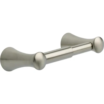BATH HARDWARE: Stainless steel spring-loaded toilet paper holder for bathroom FINISH: Brilliance Stainless finish has subtle, warm undertones which make it an excellent match with nickel or stainless steel PREMIUM: Brilliance finishes are durable, long-lasting, and guaranteed not to corrode, tarnish or discolor DURABLE: Crafted from zinc for durability DIMENSIONS: Toilet paper holder measures 1.88" H x 8.28" L and 3.70" D EASY INSTALL: All mounting hardware, template, and instructions provided COORDINATE: Complete your look with the coordinating Lahara Bath Collection of accessories (sold separately) WARRANTY: Enjoy the look you love for life with Delta’s Limited Lifetime Warranty