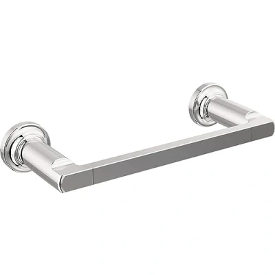 BATH HARDWARE: Polished chrome 8 in. hand towel bar for the bathroom FINISH: Chrome finish creates a bright, highly reflective, cool metallic look BUILT TO LAST: Long-lasting, durable finish resists corrosion, tarnish, and discoloration DURABLE: Crafted from steel and zinc for strength and reliability DIMENSIONS: Towel bar measures 1.78" H x 9.78" L and 3.50" D EASY INSTALL: All mounting hardware, template, and instructions provided COORDINATE: Complete your look with the coordinating Tetra Bath Collection of accessories (sold separately) WARRANTY: Enjoy the look you love for life with Delta’s Limited Lifetime Warranty, Manufacturer: Liberty Hardware