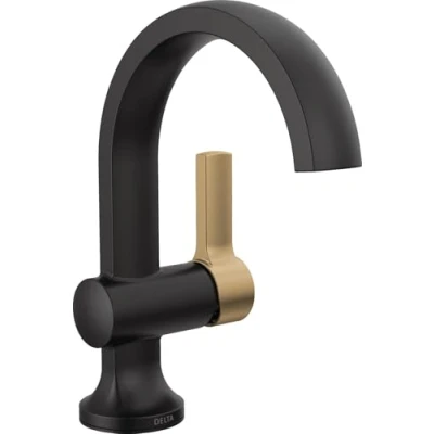Delta Faucet Albion Single Hole Bathroom Faucet, Black/Gold Handle Sink Metal Push Pop Up Drain Assembly, Matte Black/Champagne Bronze 15855LF GZ